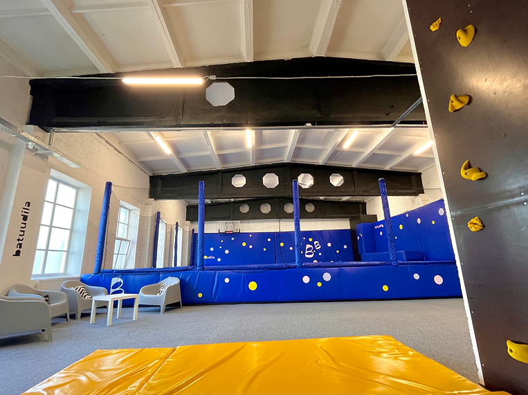 Batuudila batuudimaastik (100m2), poroloonbassein ja korvpallikorv pehmete pallidega, lisaks peovalgustus, mis teeb hüppamise veelgi lõbusamaks!